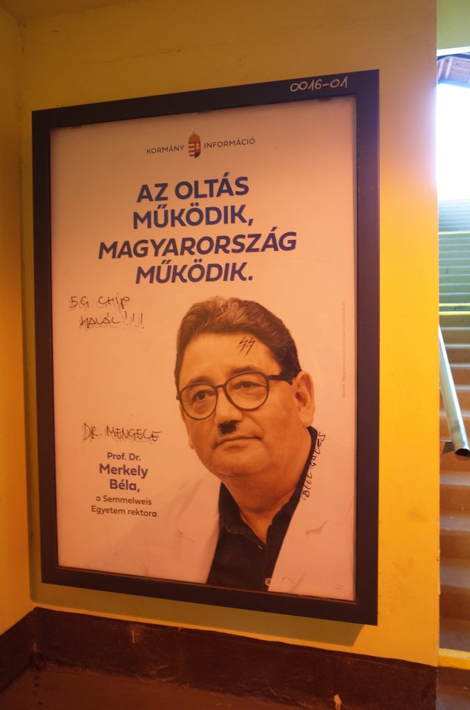 „Minden oltás egyformán, 99%-ban véd !” (doktor Markoli, alant a plakáton)
