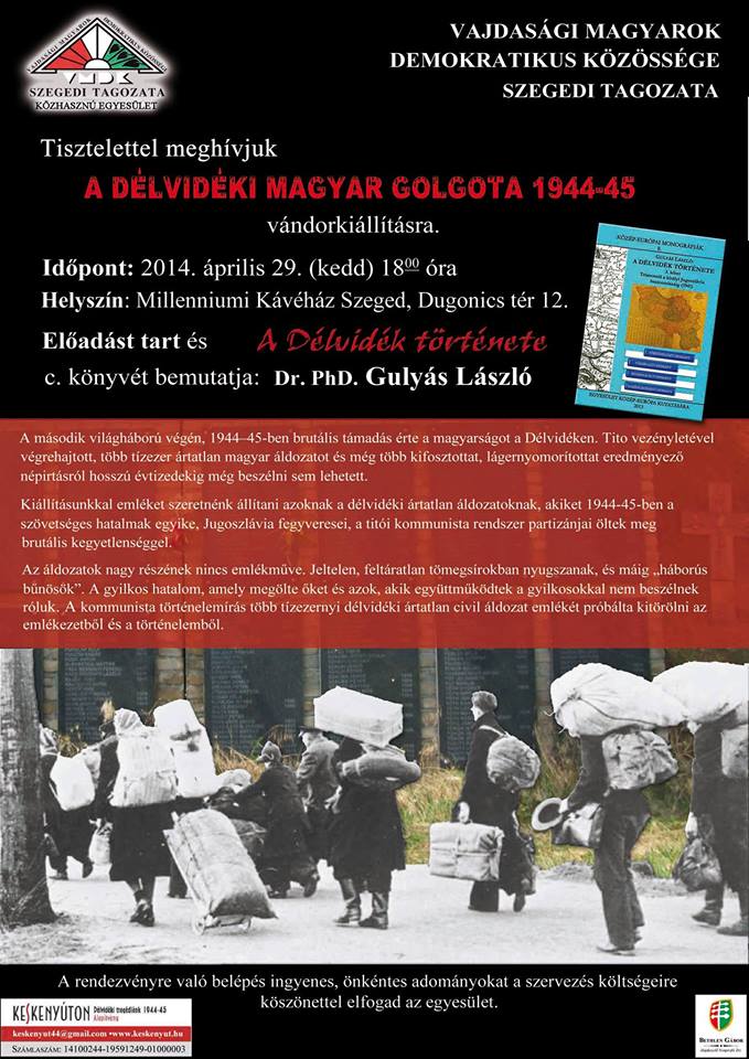 1944-45 Alapítvány vándorkiállítása az 1944-45-ös délvidéki magyarírtás 70.-ik évfordulója alkalmából, az áldozatok tiszteletére készült.