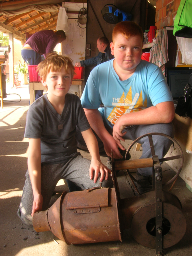 Régi fapörzsölő a szerző fiával, Álmóval meg Kocsér falu szülöttével, „Böllér” Birkás-Bakos Danival…