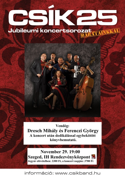 Ahogyan a szerelem is tud gyönyörű, ugyanakkor gyötrelmes lenni, úgy a népzene szeretetében eltelt 25 év is tudott göröngyös útra vinni, illetve egekig felemelő boldogságot adni. Kívánom mindazoknak, akik kíváncsian figyelemmel kísérik a munkánkat, hogy még sokáig leljenek örömet koncertjeinken az általunk játszott dallamok hallgatásában. Ezzel magunknak is kívánom ezt, hiszen hosszú ideig szeretnénk még mosolygó szemű, boldog, meghatott arcokat látva játszani, tudva, hogy van kinek muzsikáljunk.” – vallják.Vendég: Dresch Mihály és Ferenczi György.