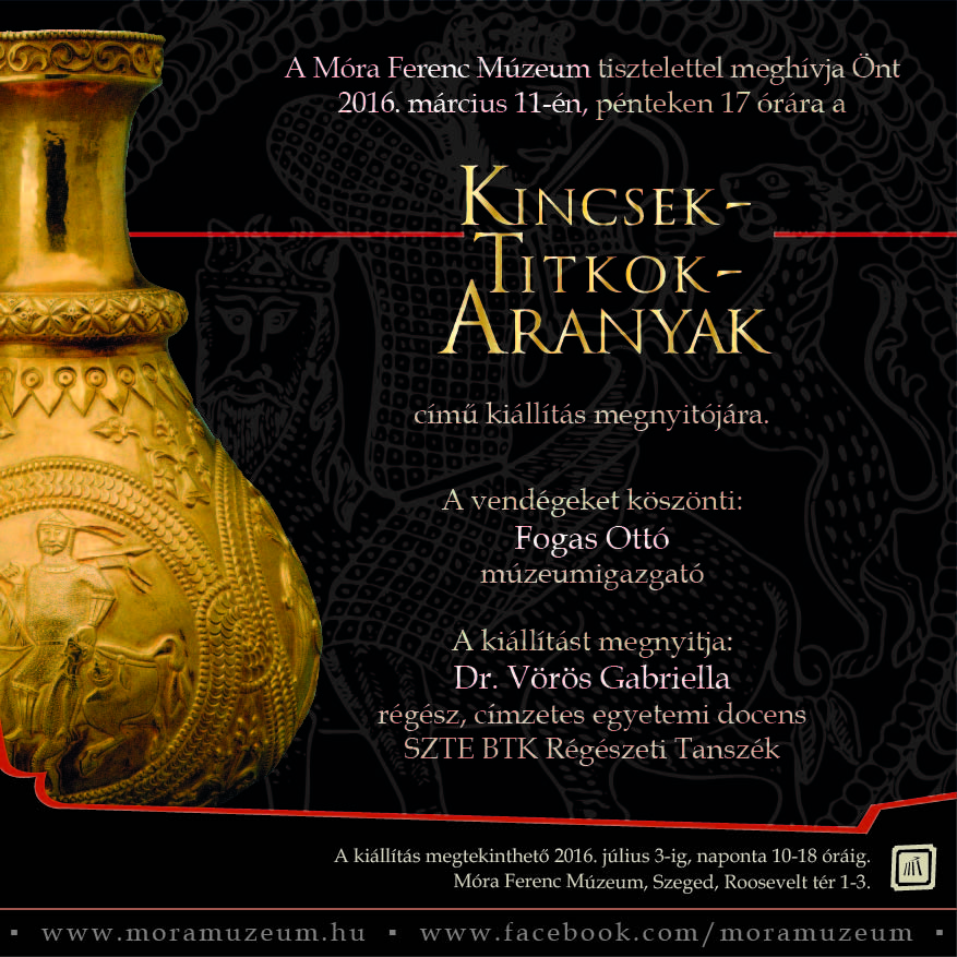 Tíz kilogrammnyi aranyat láthatnak az érdeklődők a Móra Ferenc Múzeum új időszaki kiállításán. A tárlaton bemutatják a nagyszentmiklósi aranykincs hű másolatait, melyek 24 karátos aranyból készültek a huszadik század elején. Az eredeti tárgyakat 1799-ben találta meg egy szöllősgazda Nagyszentmiklós határában: a kincs a kora középkori Közép-Európa legnagyobb aranylelete, melyet jelenleg a bécsi Kunsthistorisches Museumban őriznek.