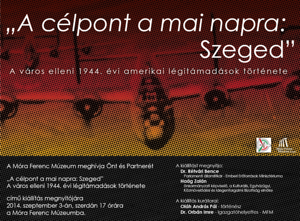 „A célpont a mai napra: Szeged” című kiállítást szeptember 3-án, szerdán 17 órakor Dr. Rétvári Bence parlamenti államtitkár nyitja meg a Móra Ferenc Múzeumban.