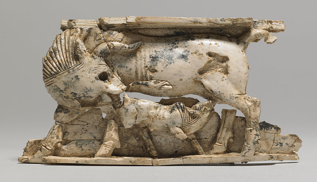 Egy elefántcsont boci tejelő anyjával Nimrud városából – ilyen kincsek azért még jól mutatnak egy lelkikorcs (pszüchopatha) nappalijában is! No meg mennyi pénzért el lehet adni!